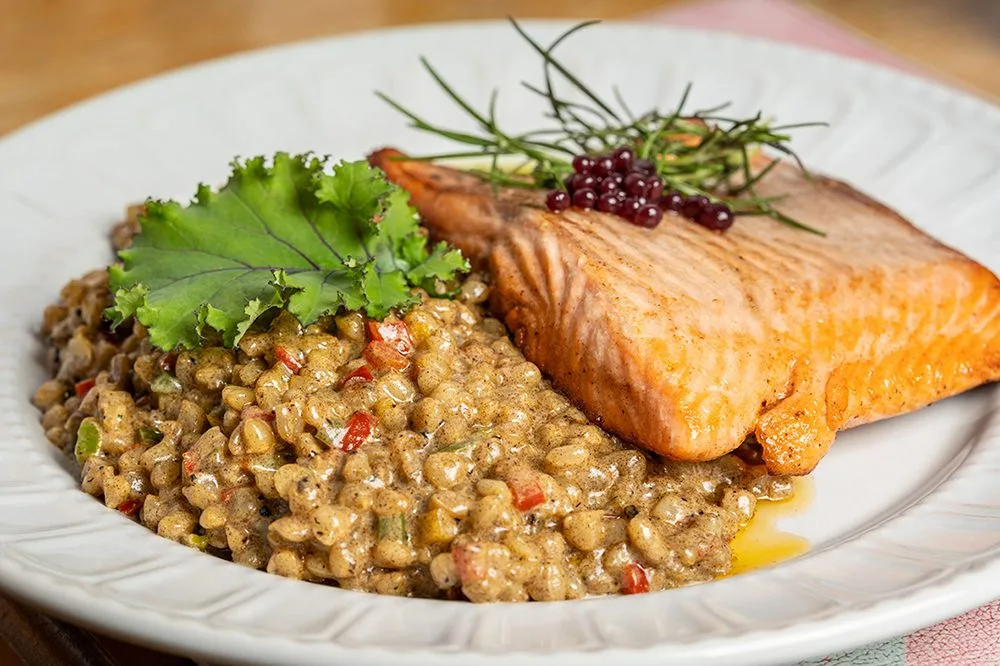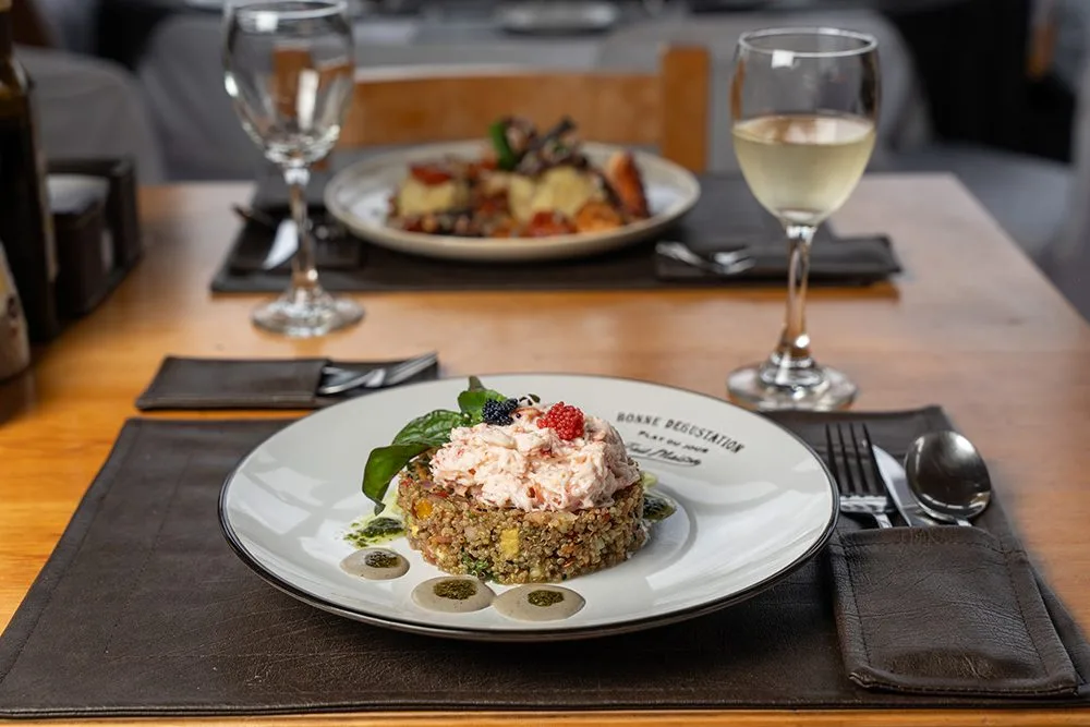 Entre las alternativas de entrada destacan cremosos como el de zapallo con verduras o platos como el tabulé de quínoa y centolla, ingredientes frescos obtenidos de la Isla Grande, que se acompañan con hierbas aromáticas y vegetales de estación.