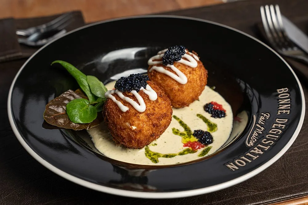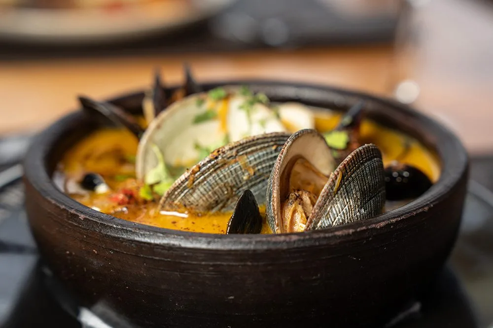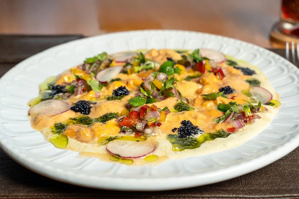 Otro imperdible de este espacio es el crocante de centolla, que consta de trozos de centolla fresca de Chiloé, envueltos en un crocante dorado y ligero, montado sobre una leche de tigre, coronado con salsa alioli y caviar.