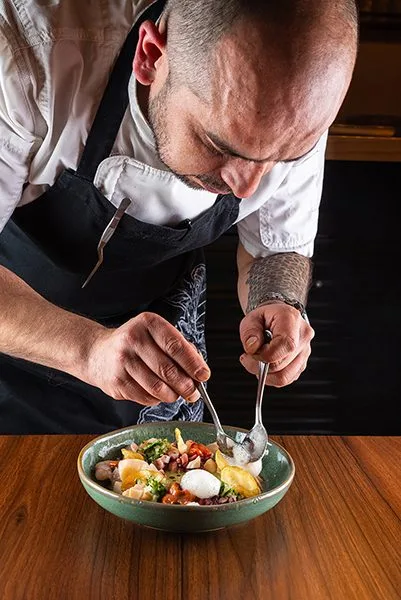 “Mientras estudiaba Ingeniería en Transporte y Tránsito en la UTEM, sentí que me faltaba sentido. Dejé la carrera y la cocina fue escuela. Mentores, disciplina y la convicción de que la mise en place es un estado mental que se practica todos los días”, responde.