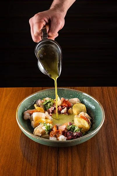 COSTA CHILENA | exquisita selección de piure, camarones, pulpo, ostiones y locos chilenos, servidos con salsa verde, leche de tigre-piure y un toque de limón, en una explosión de sabores marinos que evocan la esencia de la costa chilena