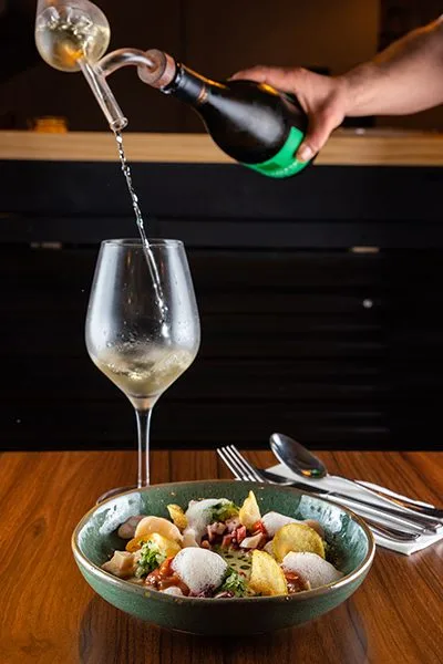 “Nuestra carta de vinos privilegia vinos buenos antes que caros”, indica Rodrigo. Botellas ágiles, varias de MOVI. “Vinos que llaman a compartir, a reírse, fáciles de beber”, añade.