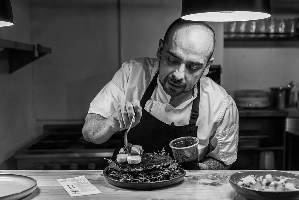 Después de resistir el difícil período post 2020, en 2024 reabrió en su ubicación actual, Arturo Prat 156. Un ventanal grande hacia la calle adelanta la experiencia. Una cocina indómita como postura. “Sin medias tintas y a la vista”, dice con convicción. La gente ve, huele y escucha cómo se cocina lo que se sirve.