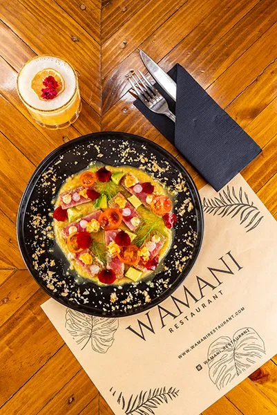 El lugar conserva esa energía de descubrimiento. Maderas cálidas, luz natural filtrándose entre los ventanales, una terraza viva que huele a huerta recién regada. Nada parece impostado. Wamani se siente como un restaurante que creció desde adentro, desde el pulso de quienes lo habitan. Valentina, la tercera socia y coadministradora, lo resume: “Queríamos que se sintiera real, que no fuera un negocio sino una experiencia humana. Que la gente comiera y sintiera algo”.