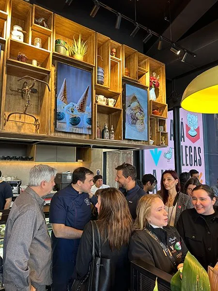 También destaca en esta carta su helado de Harina Tostada de Talca, con todo el sabor y textura, Plátano con Leche Condensada que viene como caluga (¡¡!!), Selva Negra – la torta de Chile -, Pistacho de Lampa nacido y criado en la zona central de Chile, Lúcuma Merengue Manjar, con lúcumas de La Cruz, Quinta Región, y Mandarinas de Limarí, helado revelación 2025 de esta cafetería heladería que cumplió 10 años recientemente.