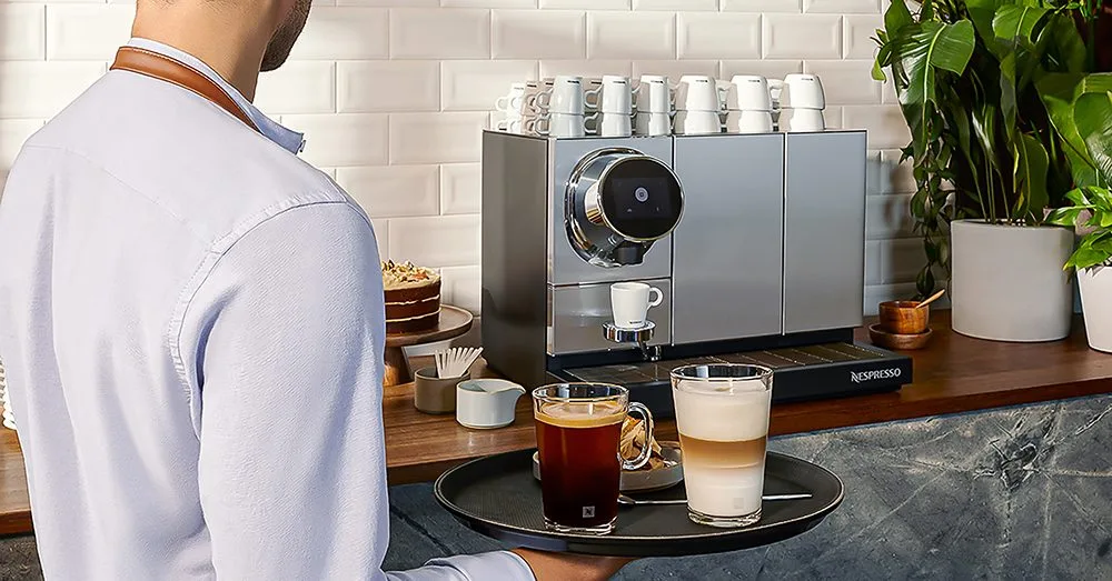 Nespresso Professional presenta una línea robusta y versátil, diseñada especialmente para ambientes de alto flujo como hoteles, restaurantes, cafeterías y oficinas. Entre los modelos destacables se encuentran: Zenius (ideal para hasta 70 cafés por hora, con 19 bares de presión, tres medidas programables, y lista para usar en apenas 35 segundos) o las Nespresso Momento 100, Nespresso Momento 200 y Nespresso Momento 120: máquinas con pantalla táctil, limpieza guiada, diseño modular y reconocimiento automático de cápsulas, ideales para demanda elevada y depósito de leche para elaboración de bebidas con espuma insuperable en caliente o en frío (según modelo).